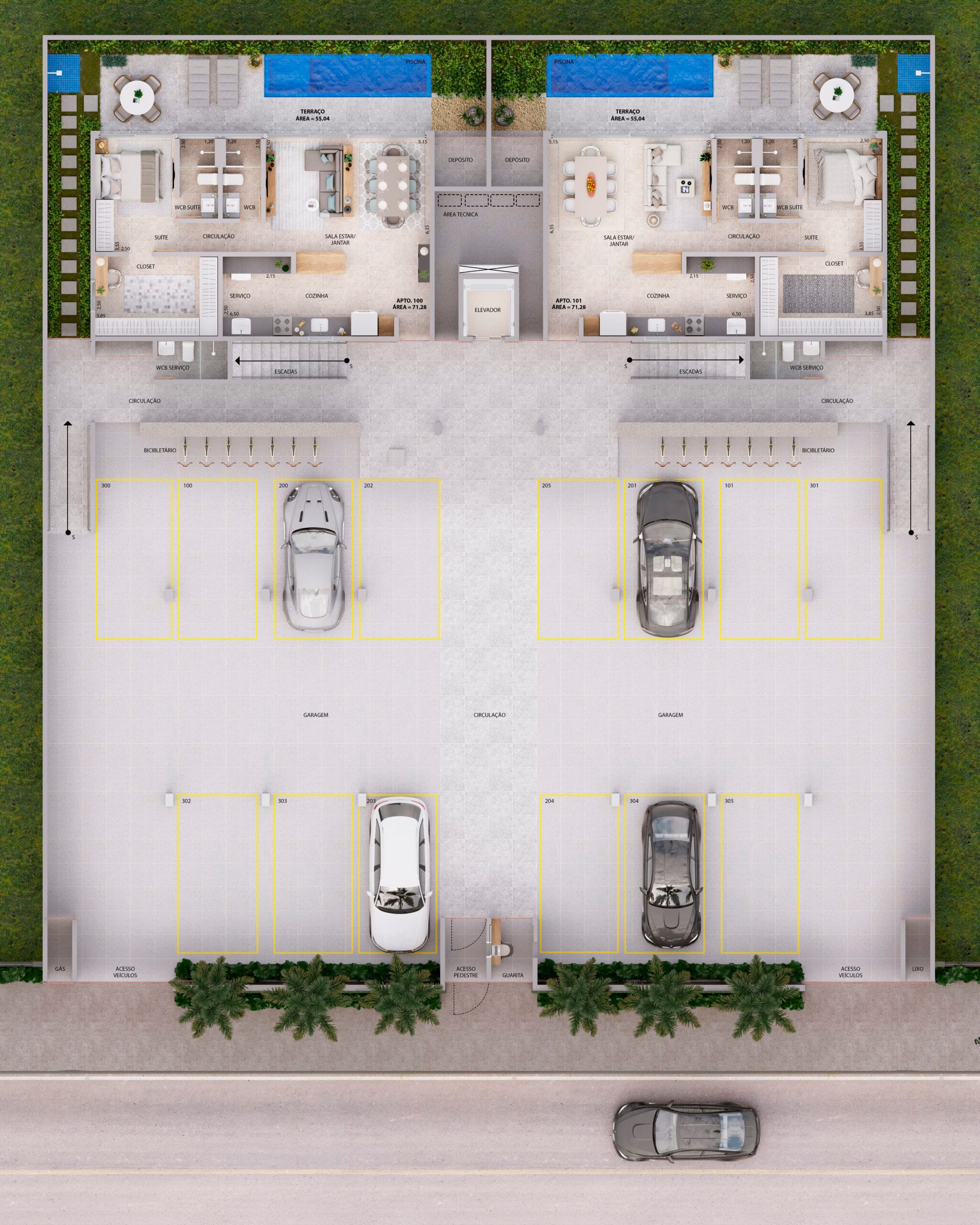 Com fácil acesso às praias urbanas da capital, o Autem Duo Residence está localizado no bairro do Bessa, a poucos metros do Parque Parahyba II, próximo ao mar do Caribessa.